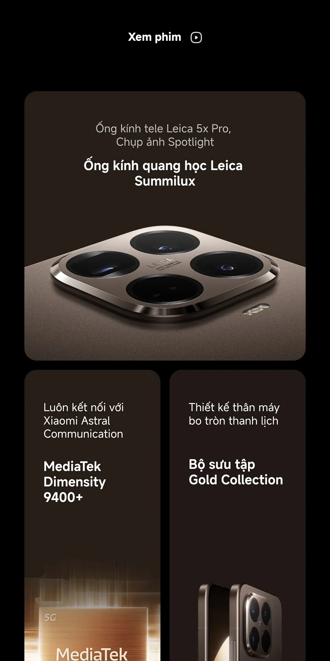 Xiaomi 15T Pro Xiaomi 15T Pro | Ống kính tele Leica 5x Pro, Chụp ảnh Spotlight | Thiết kế thân máy bo tròn thanh lịch | Màn hình 6.83" bảo vệ mắt cùng tần số quét 144Hz | Sạc nhanh HyperCharge: 90W có dây, 50W không dây | Xiaomi HyperAl Mua Ngay