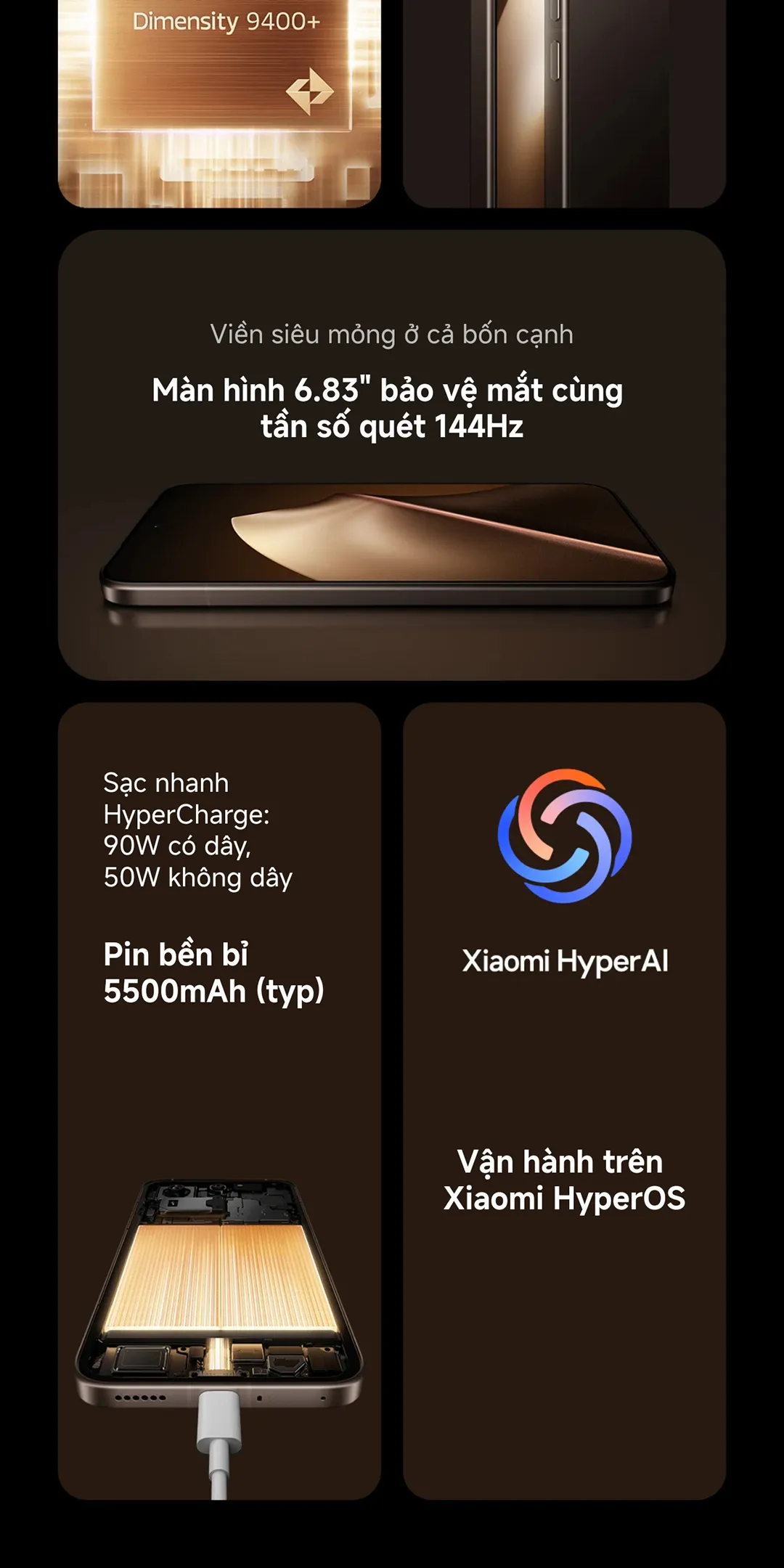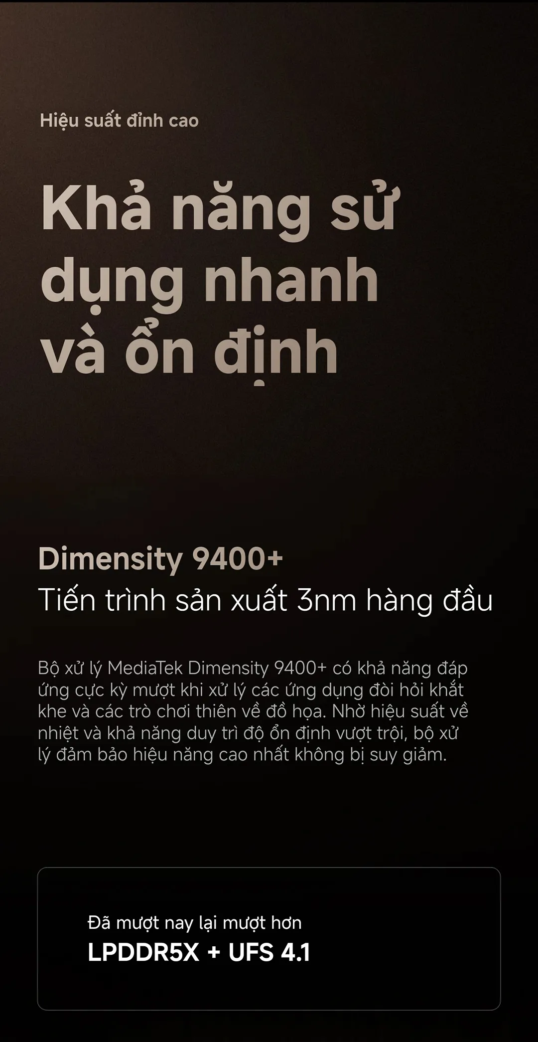 Hiệu năng – MediaTek Dimensity 9400+ và LPDDR5X/UFS 4.1