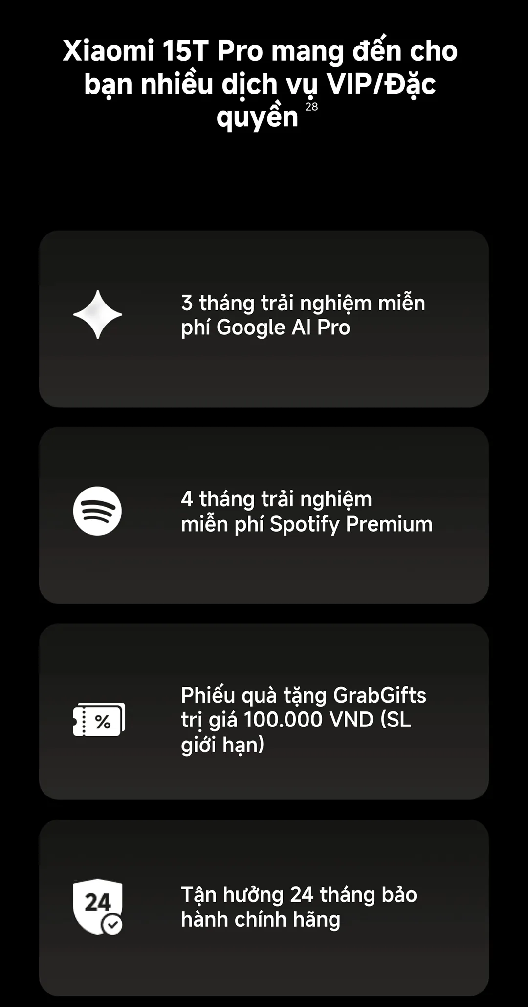 Đối với những người dùng quan tâm đến dịch vụ hậu mãi, Xiaomi 15T Pro cung cấp: