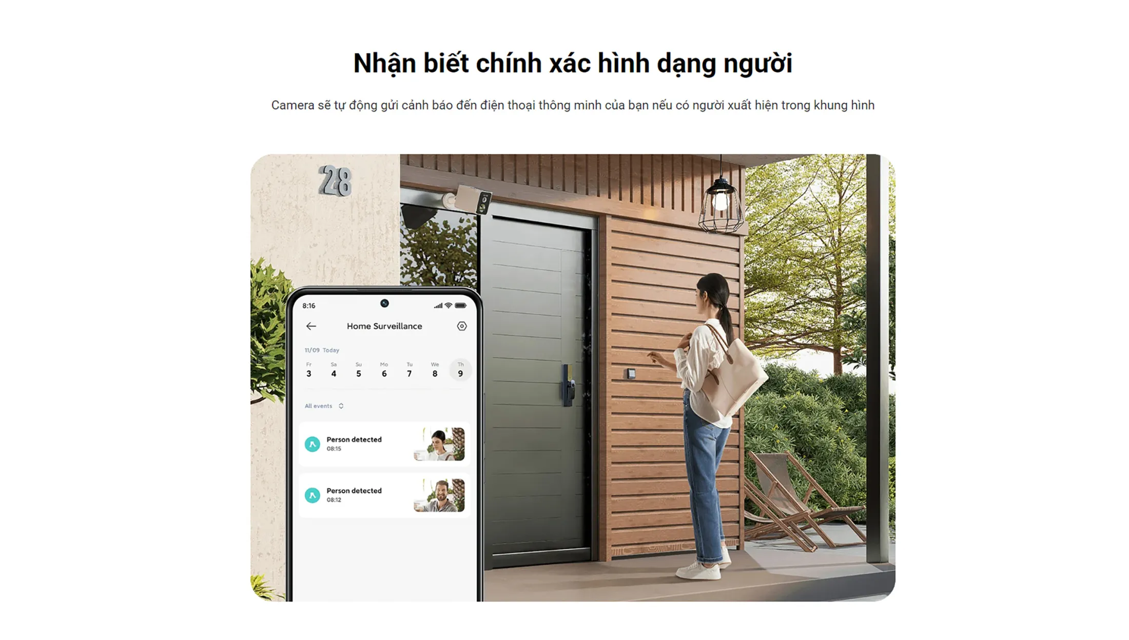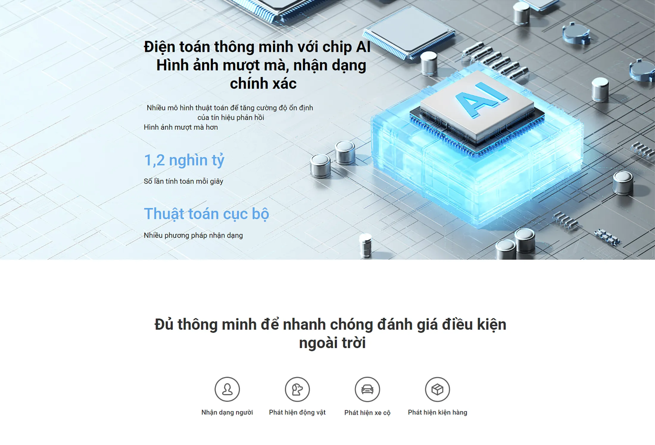 Camera được trang bị chip AI mạnh mẽ, cho phép phân loại nhanh chóng giữa người, xe cộ, động vật và kiện hàng. Khi phát hiện bất kỳ sự chuyển động nào trong vùng giám sát, camera sẽ tự động gửi cảnh báo tới điện thoại thông minh của bạn.