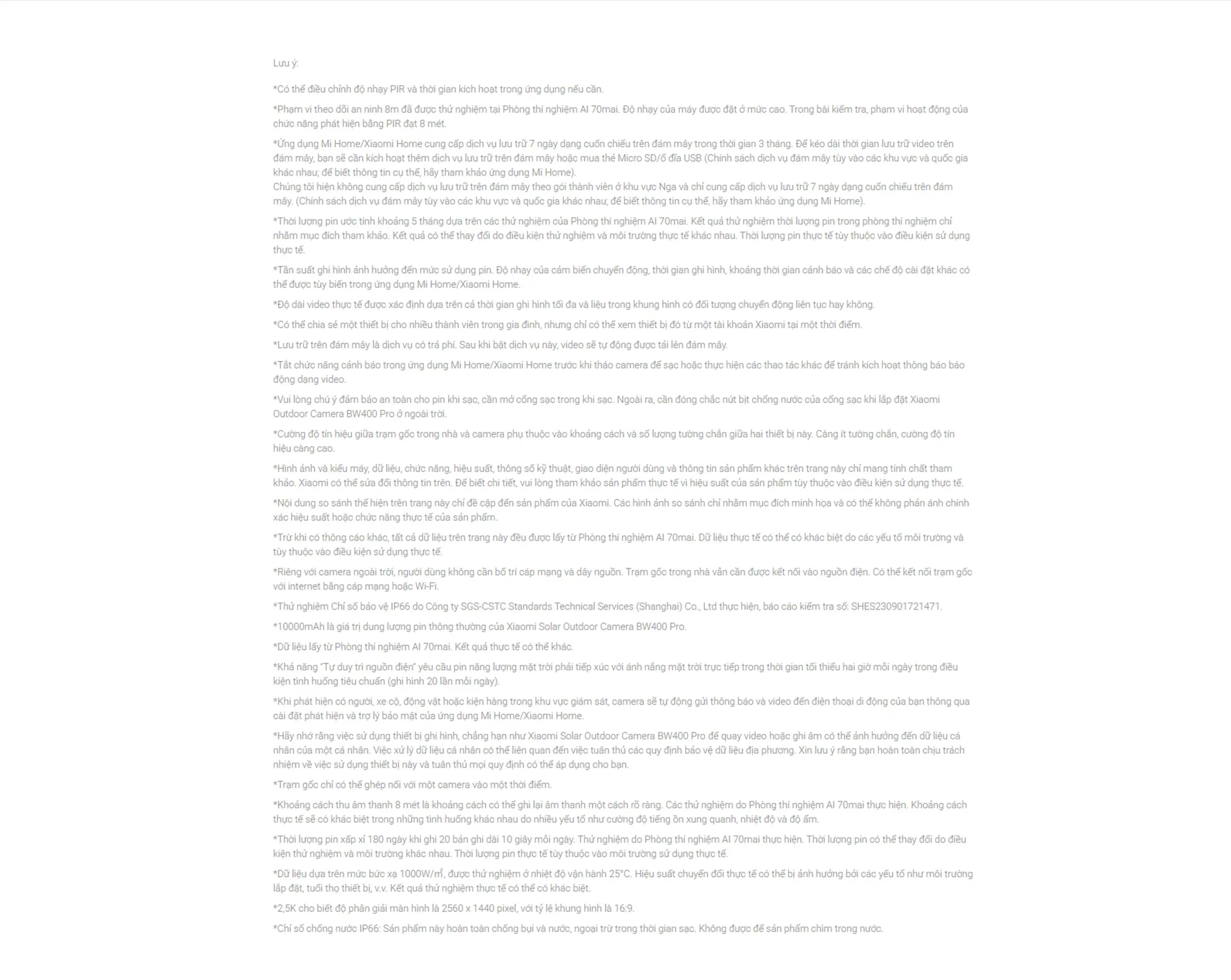 Với những ưu điểm vượt trội như độ phân giải 2.5K, pin 10k mAh có thể tự duy trì nguồn điện, tính năng phát hiện AI chính xác và thiết kế chịu nước/IP66, Xiaomi BW400 Pro thực sự là một giải pháp an ninh toàn diện cho ngôi nhà của bạn.