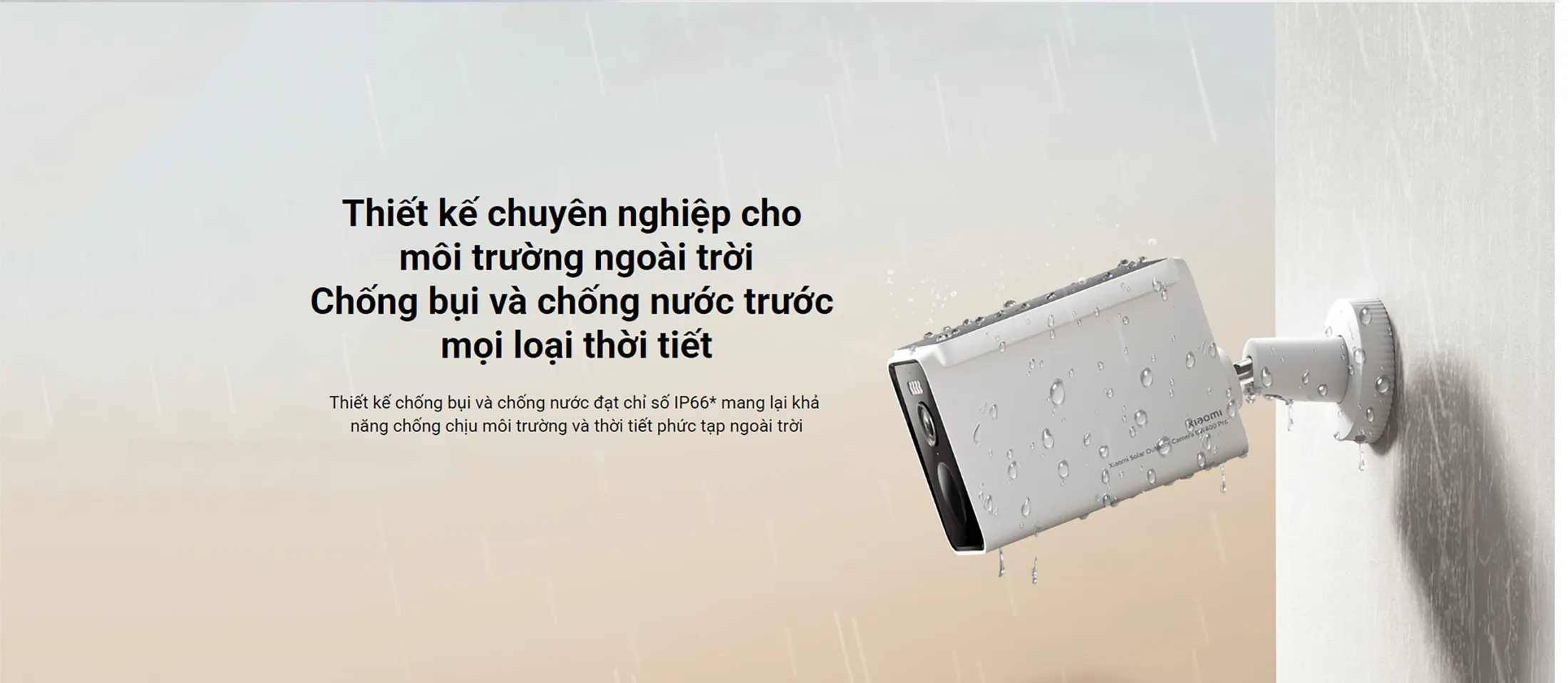 Xiaomi BW400 Pro được thiết kế theo tiêu chuẩn IP66 – chống bụi và nước cao cấp. Đặc tính này giúp camera có thể lắp đặt trực tiếp ngoài trời mà không sợ bị hư hỏng do mưa gió, cơn bão hay nắng nóng. Thêm vào đó, khung viền bằng nhôm nhẹ nhưng chắc chắn, màu sắc tinh tế làm cho sản phẩm vừa bảo vệ, vừa hòa nhập với môi trường xung quanh.