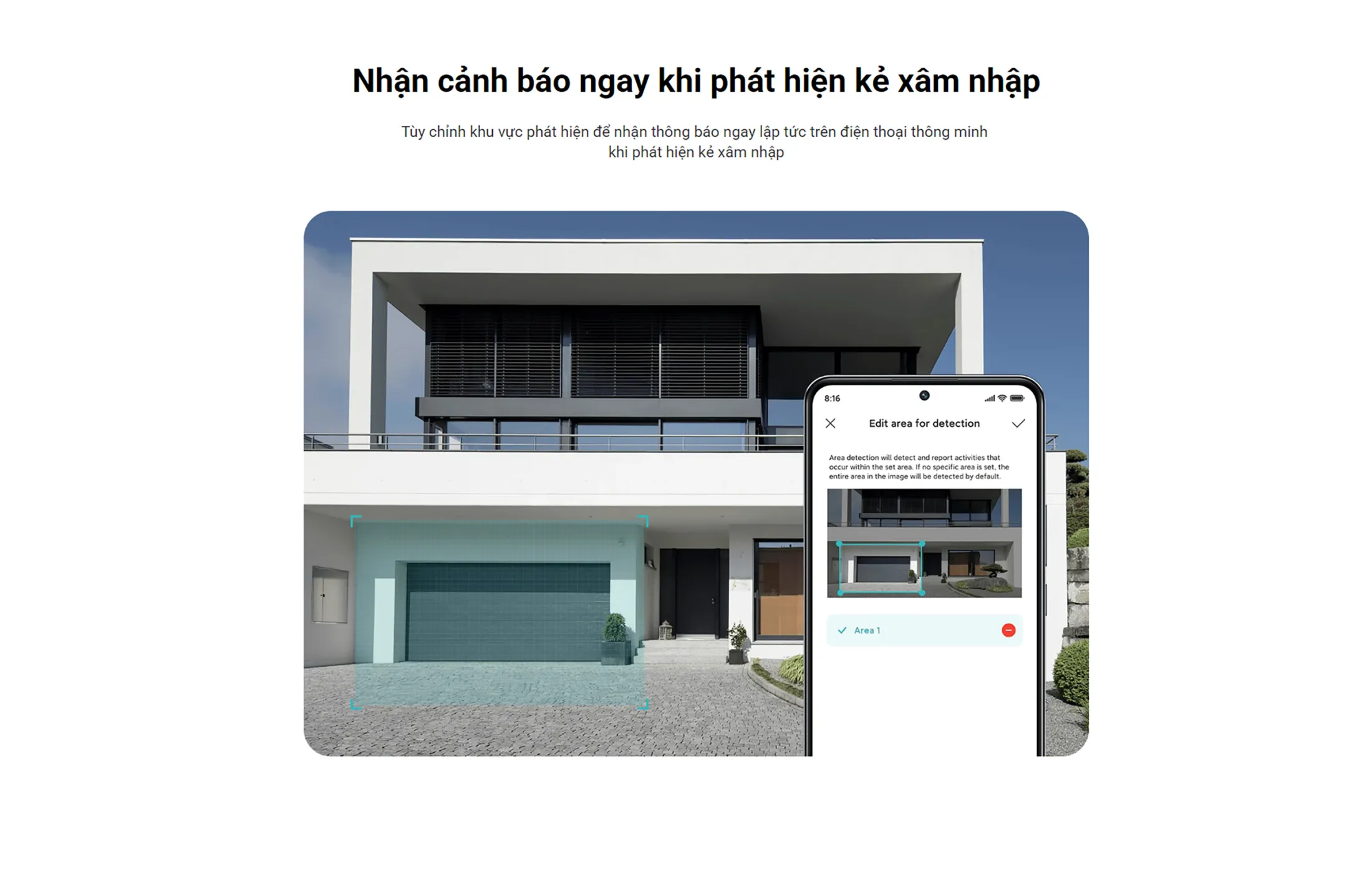- Tùy chỉnh khu vực phát hiện: Bạn có thể điều chỉnh độ nhạy và phạm vi theo nhu cầu.