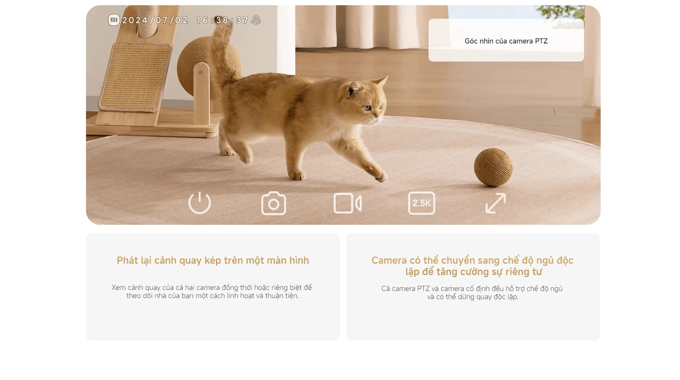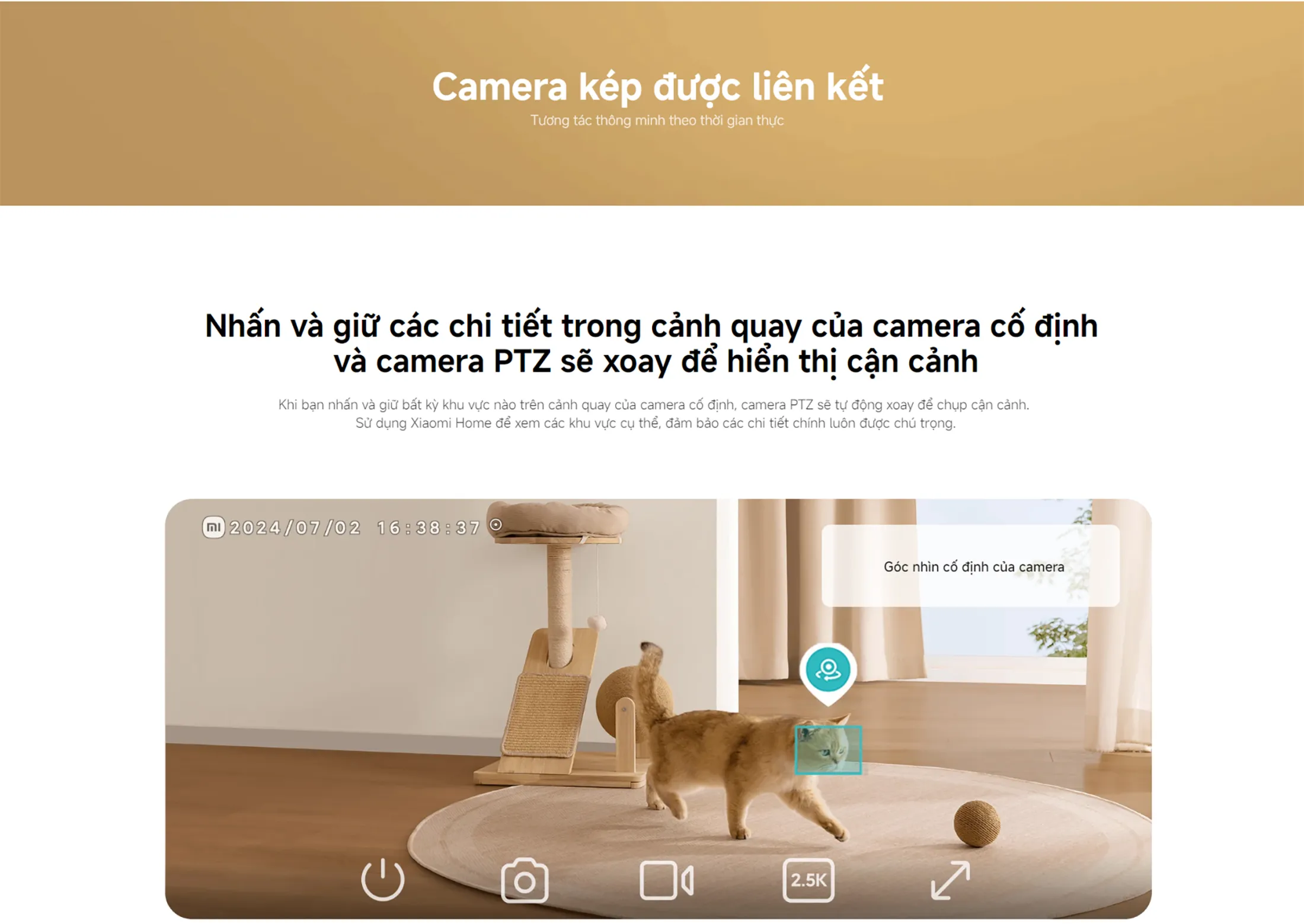 Xiaomi C500 Dual cho phép người dùng vừa xem được hai góc nhìn đồng thời, vừa có thể chọn xem riêng từng camera tùy ý. Đặc biệt, khi nhấn và giữ bất kỳ khu vực nào trên màn hình của camera cố định, camera PTZ sẽ tự động xoay tới vùng đó để chụp cận cảnh – tính năng này giúp người dùng nhanh chóng nhận diện chi tiết mà không cần thao tác phức tạp.
