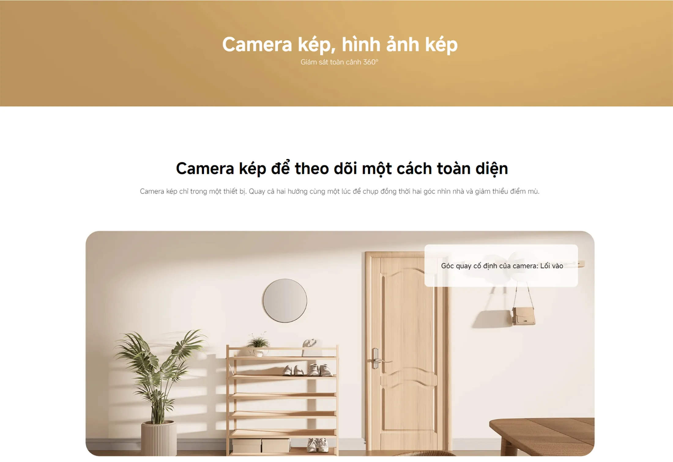 - An ninh toàn diện: Giám sát 360°, hai camera đồng thời, giảm thiểu điểm mù.