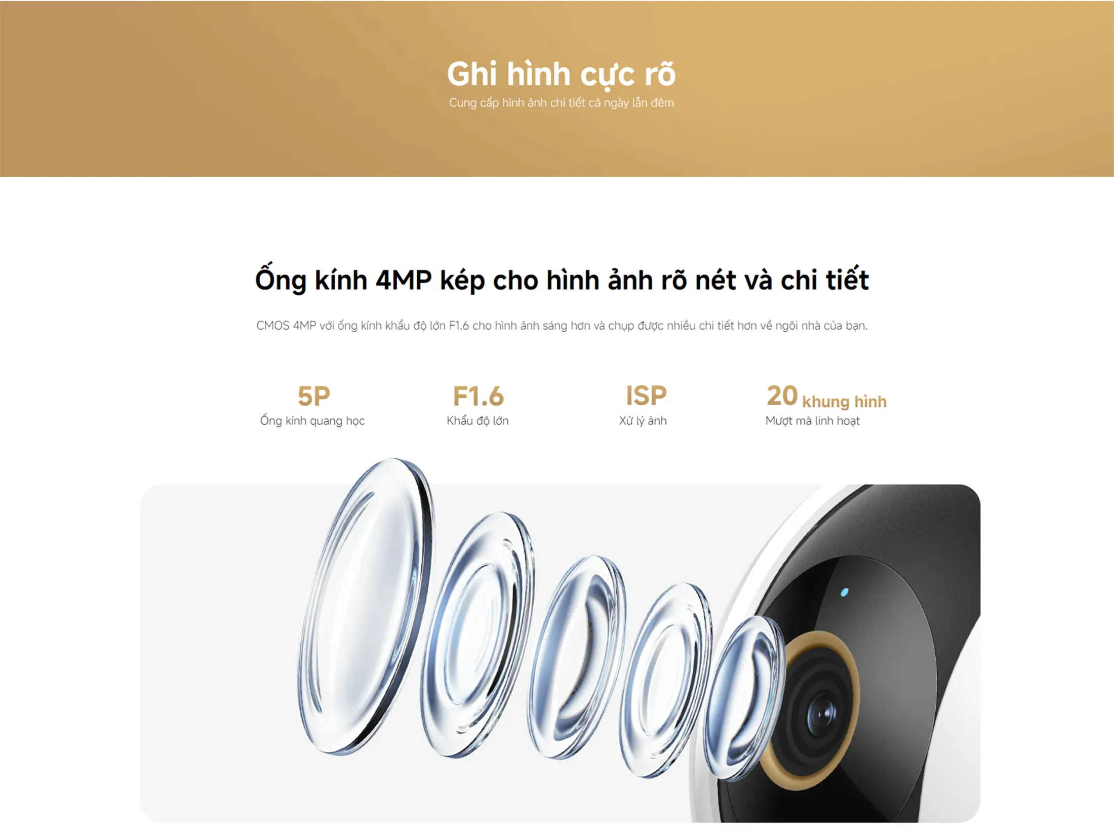 - Ống kính 4MP kép: mỗi camera có độ phân giải 2560 x 1440, cho hình ảnh sắc nét, chi tiết.