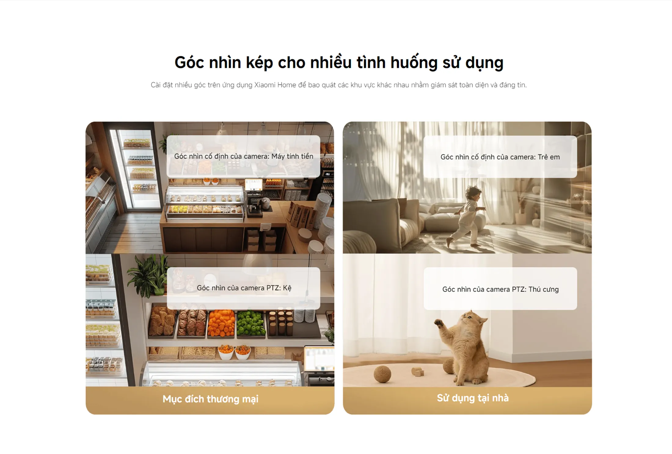 Nhờ có hai camera trong một thiết bị, Xiaomi C500 Dual mở rộng phạm vi giám sát lên tới 360°, giảm thiểu các điểm mù thường gặp với camera truyền thống.