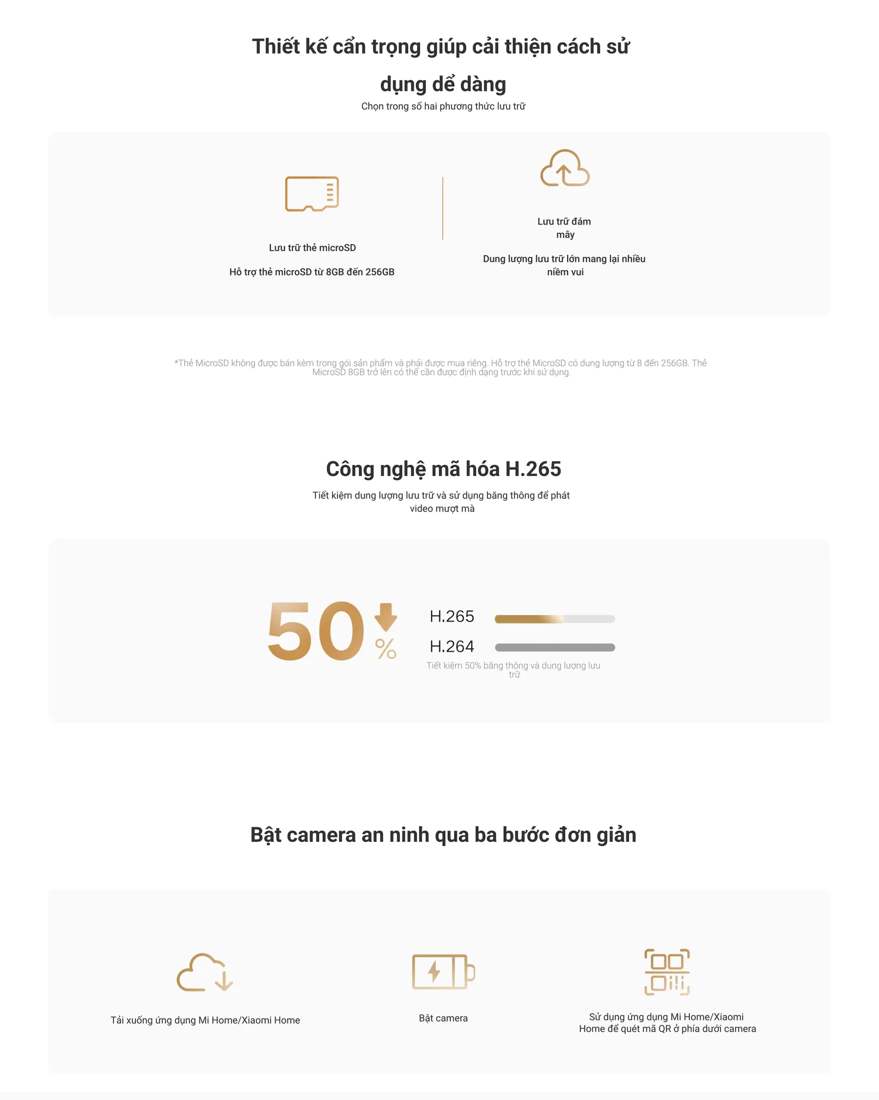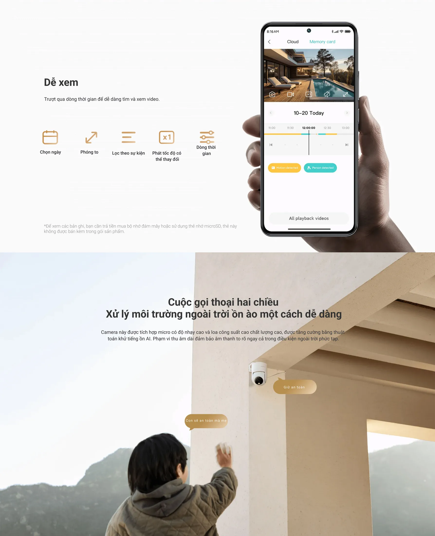 - Lưu trữ: Hỗ trợ microSD dung lượng từ 8GB đến 256GB; bạn có thể lựa chọn lưu trữ cục bộ hoặc dịch vụ đám mây (định kỳ).