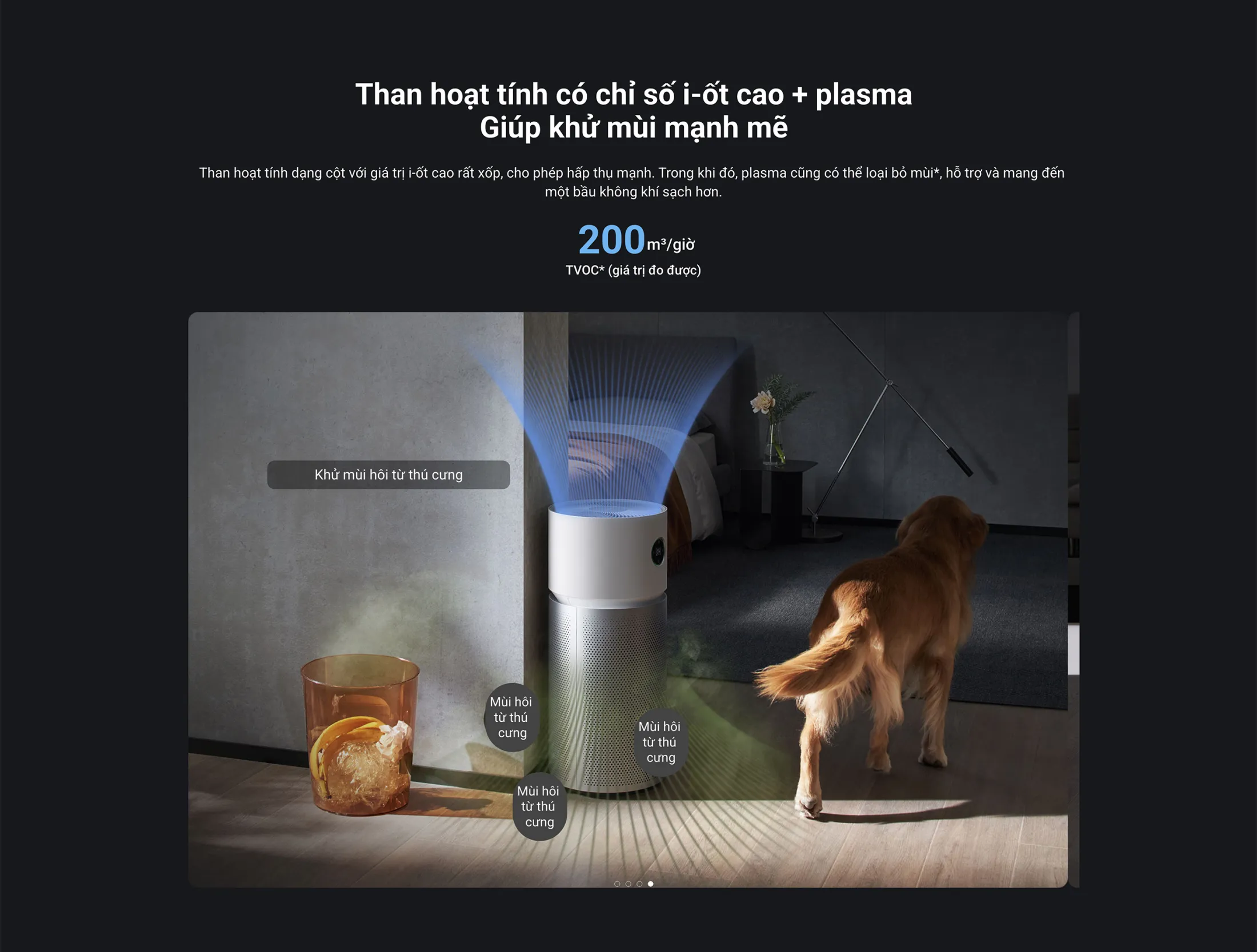 - Khả năng khử mùi hôi từ thú cưng: 200 m³/giờ