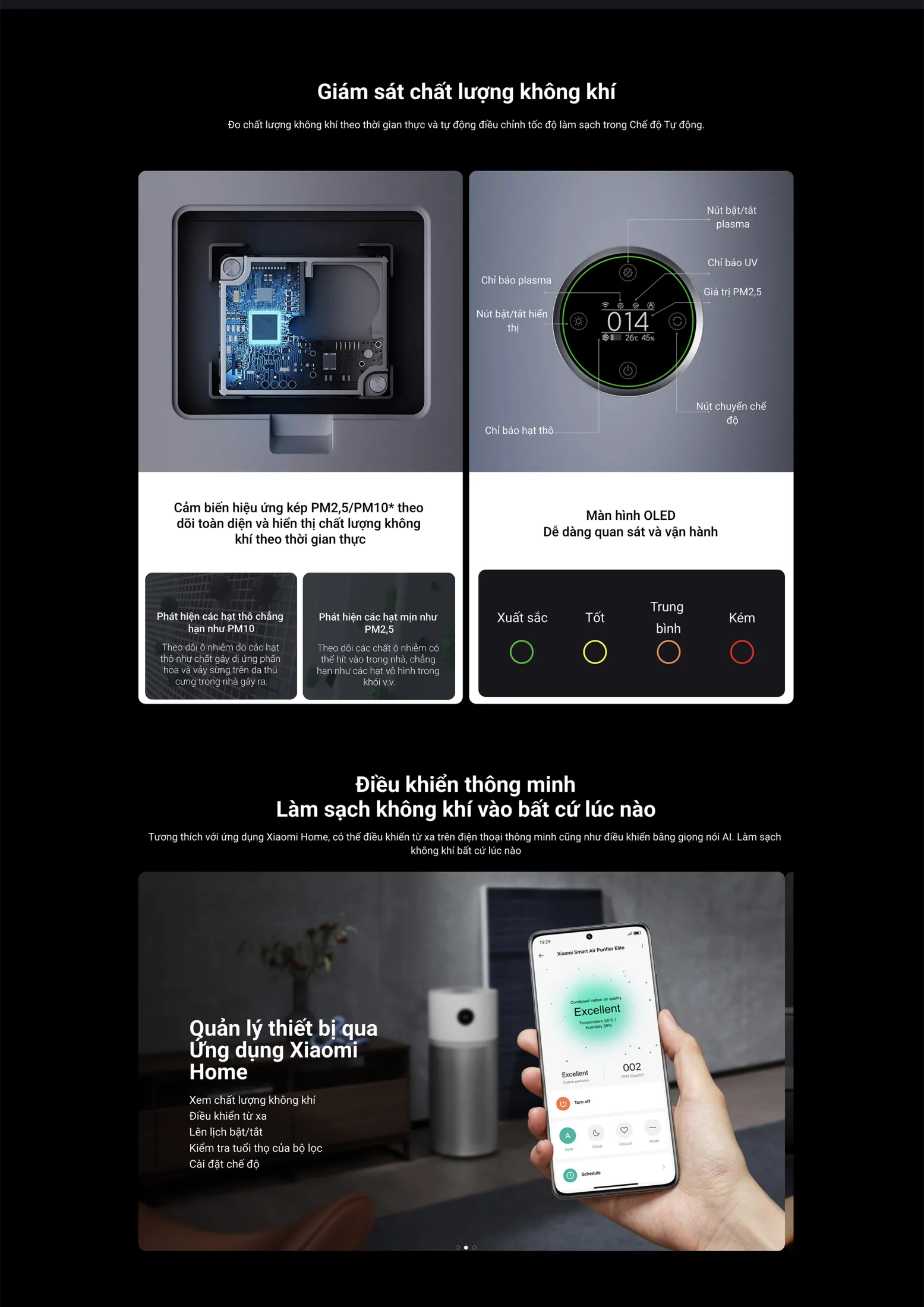 - Kiểm tra chất lượng không khí thời gian thực trên màn hình OLED