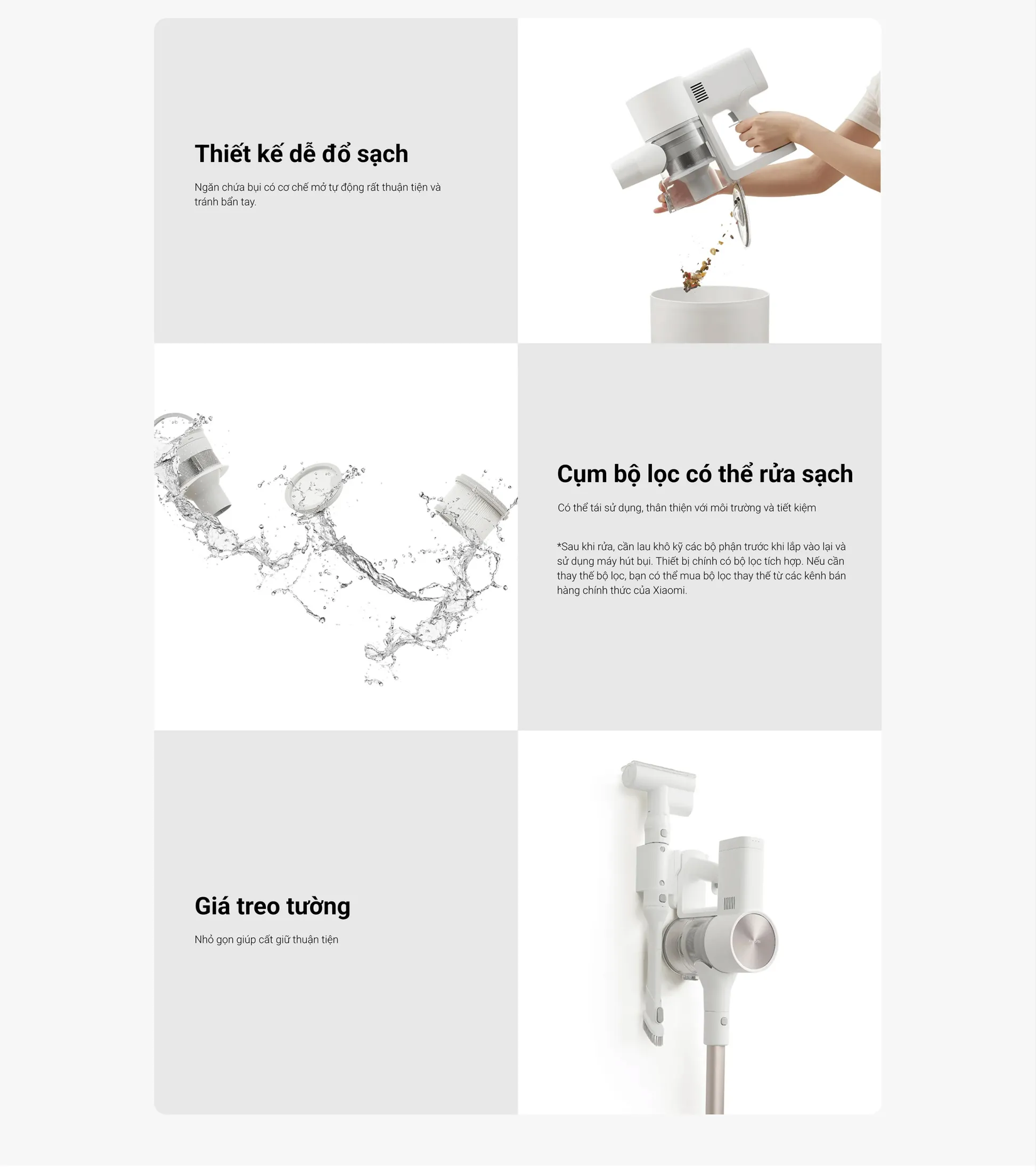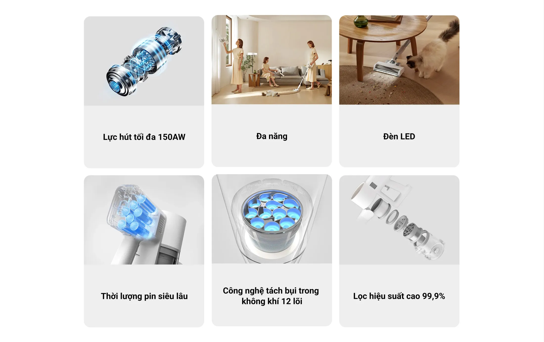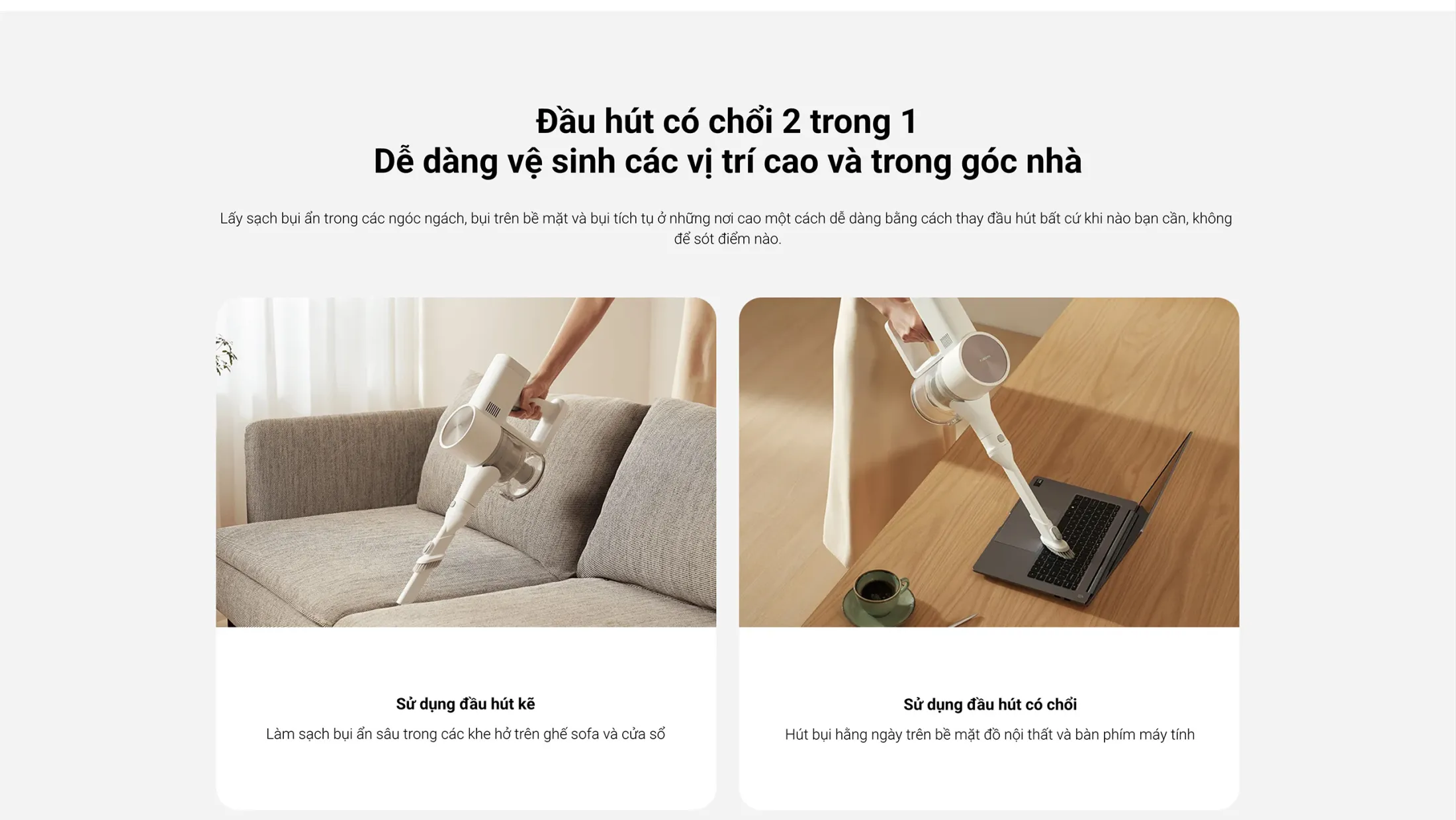 - Phụ kiện đa dạng – từ đầu hút kẽ đến thanh chổi điện mini tốc độ cao, đáp ứng mọi nhu cầu dọn dẹp.