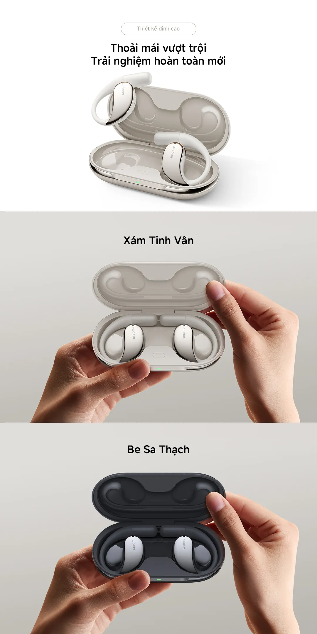Xiaomi OpenWear được thiết kế đặc biệt cho những người yêu thích sự tự do khi nghe nhạc mà vẫn muốn giữ liên lạc với môi trường xung quanh. Với kiểu dáng open‑ear, tai nghe không chiếm trọn vùng tai, mang lại cảm giác thoáng đãng và không gây áp lực lên da tai. Điều này giúp người dùng có thể đeo trong thời gian dài mà không gặp khó chịu.