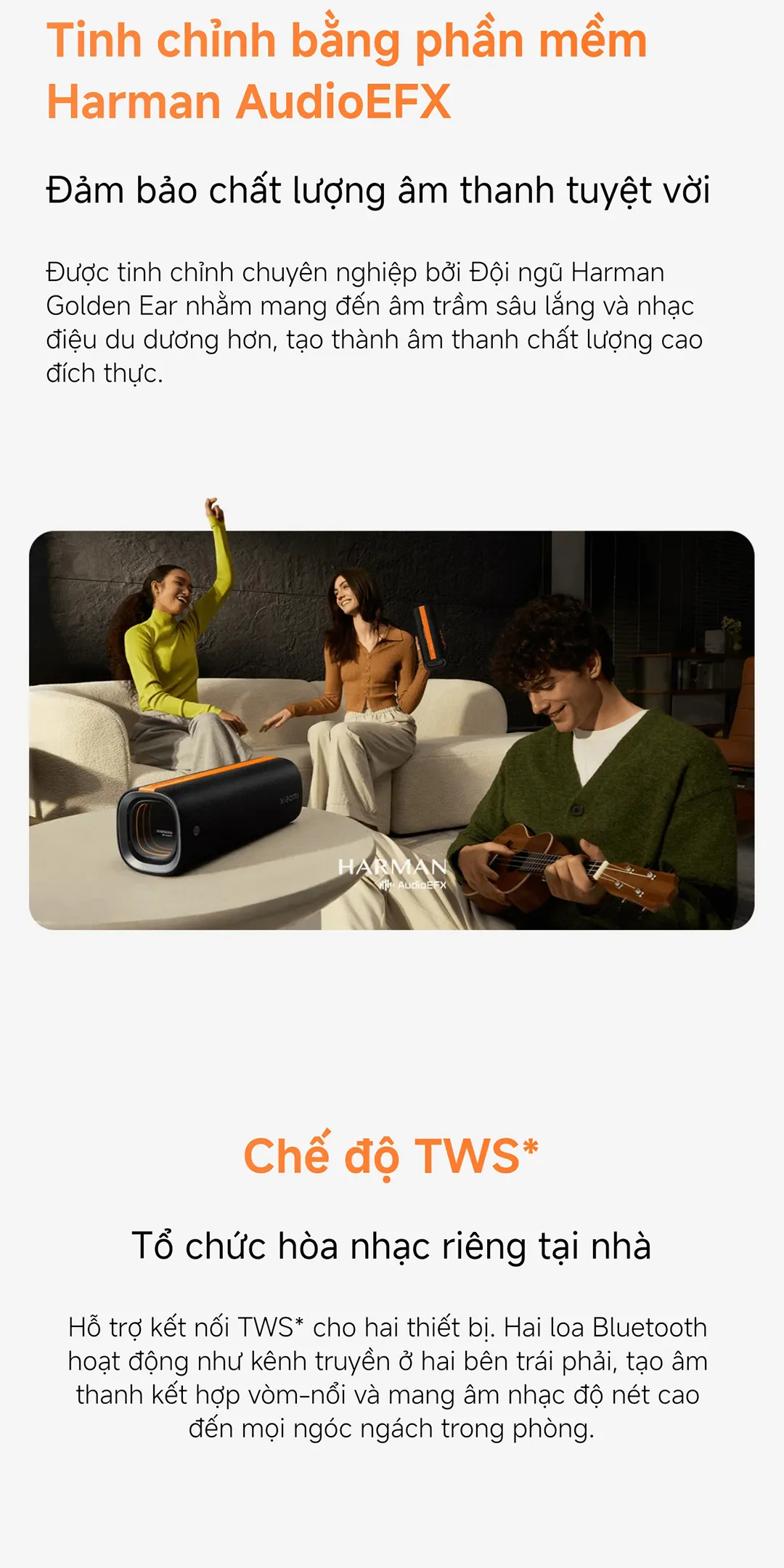 Harman AudioEFX không chỉ là một bộ lọc âm thanh; đó còn là nền tảng giúp Xiaomi Sound Party đạt được sự cân bằng hoàn hảo giữa các dải tần. Nhờ công nghệ này, bạn sẽ trải nghiệm: