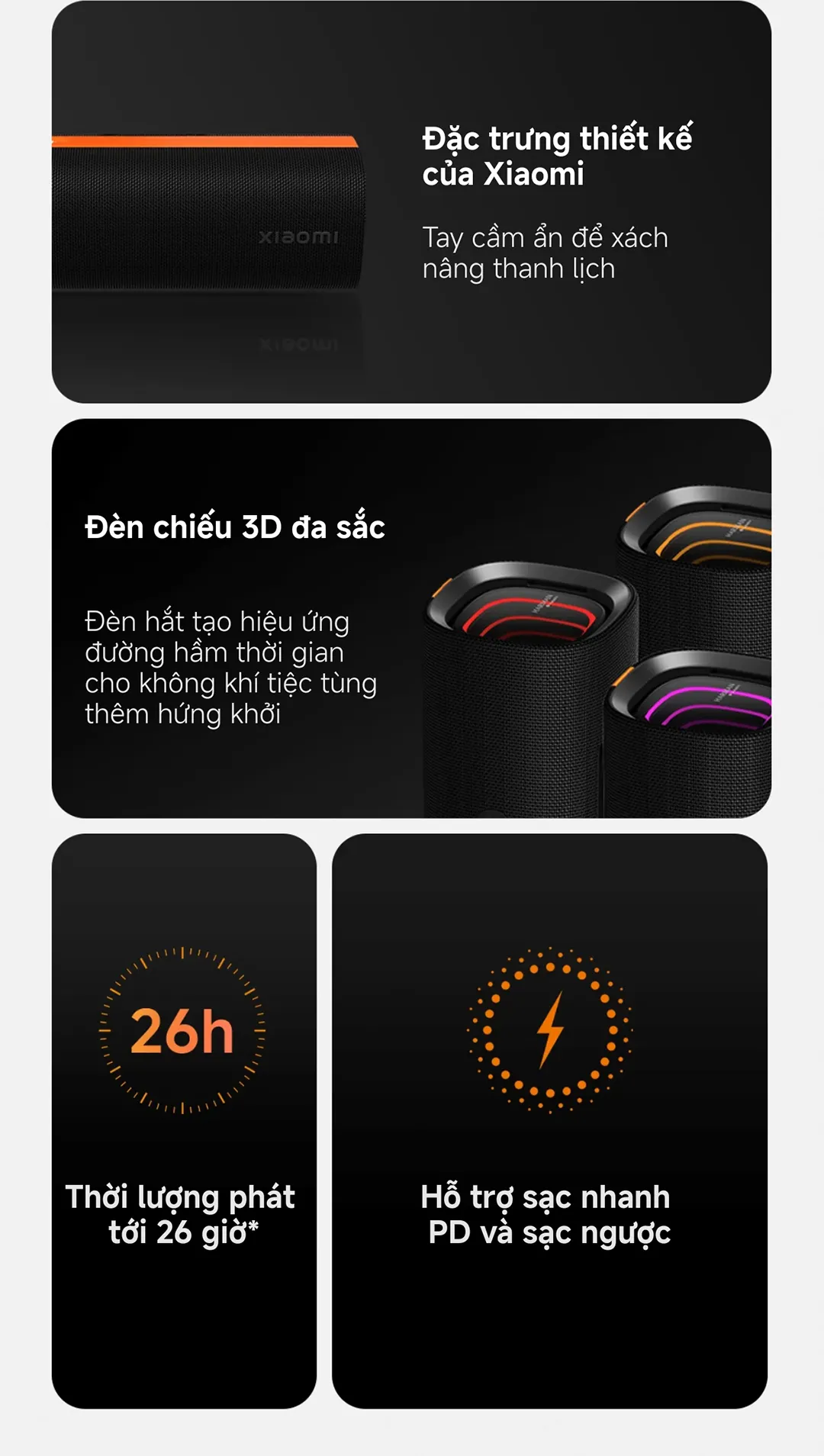 Xiaomi Sound Party đã bước vào thị trường loa Bluetooth với một phong cách mới lạ, thiết kế tinh tế và hiệu năng âm thanh ấn tượng. Nếu bạn đang tìm kiếm một chiếc Loa 50W có khả năng truyền tải âm nhạc mạnh mẽ tới mọi góc phòng, đồng thời mang đến trải nghiệm ánh sáng tuyệt vời, thì Xiaomi Sound Party chính là sự lựa chọn hoàn hảo.