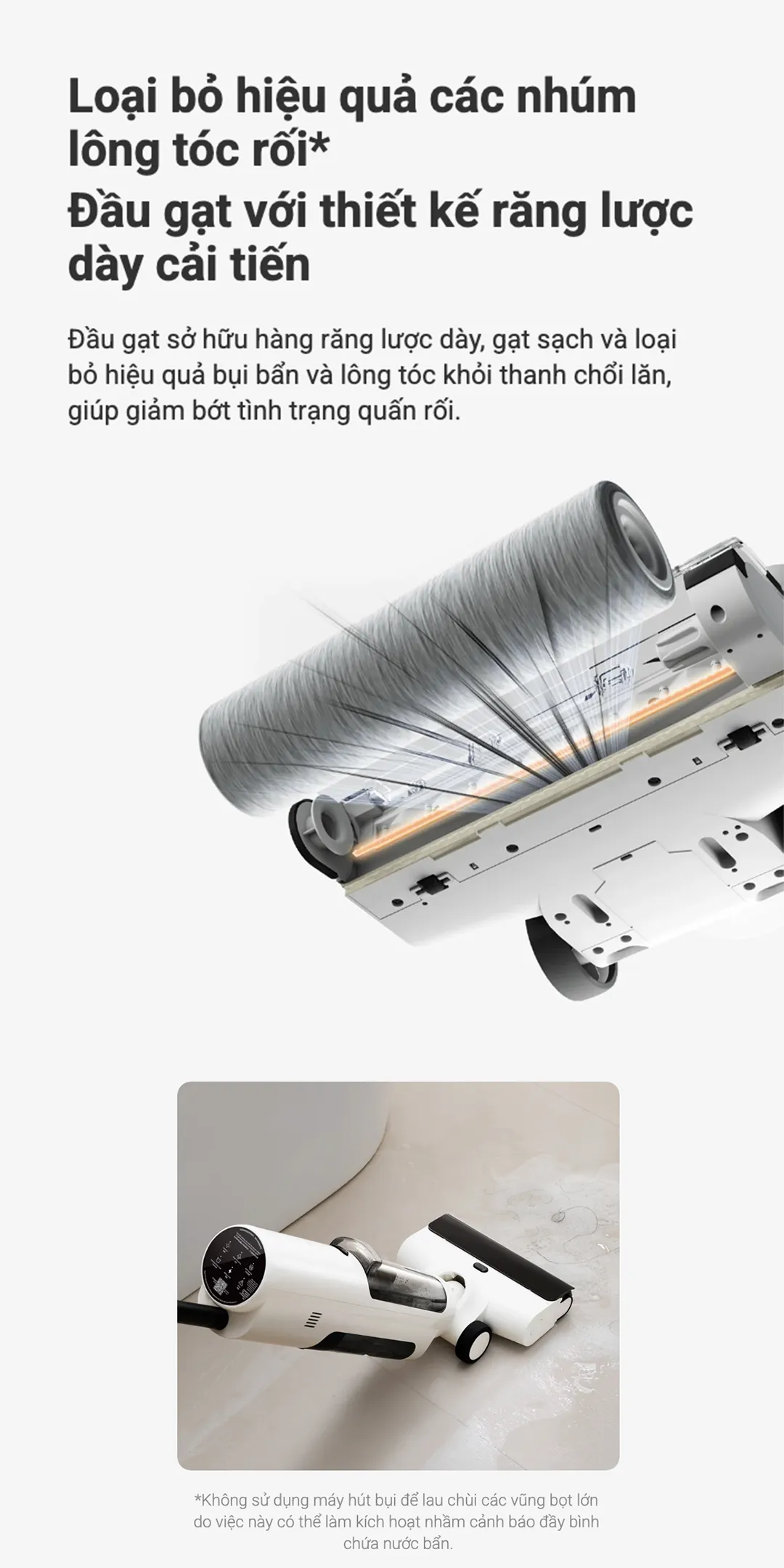 Điều này rất quan trọng đối với những người có thú nuôi hoặc thường xuyên dọn nhà với các chất lỏng và bụi bẩn. Đặc biệt, thanh chổi lăn được trang bị răng lược dày giúp kéo dài thời gian sử dụng và giảm thiểu tình trạng quấn rối lông tóc.