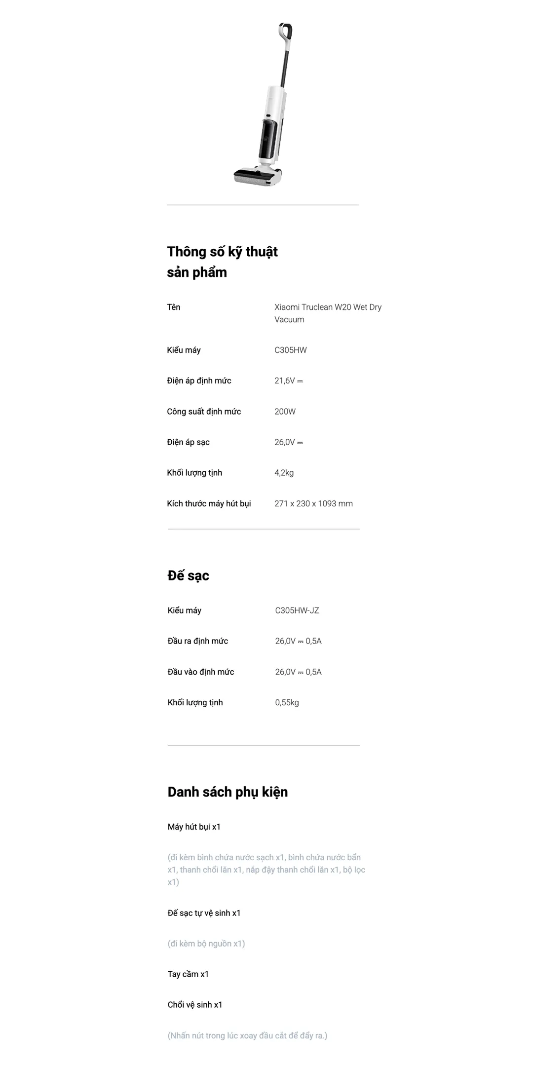 Cách mua Xiaomi Truclean W20 – Link tham khảo: