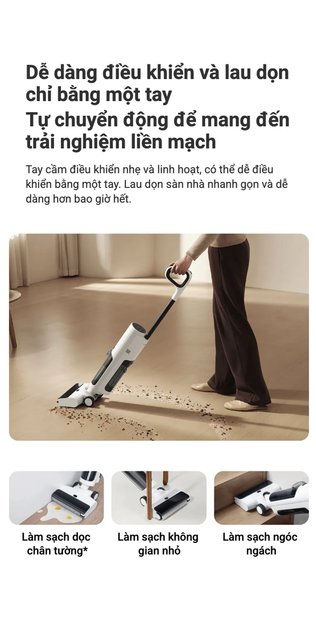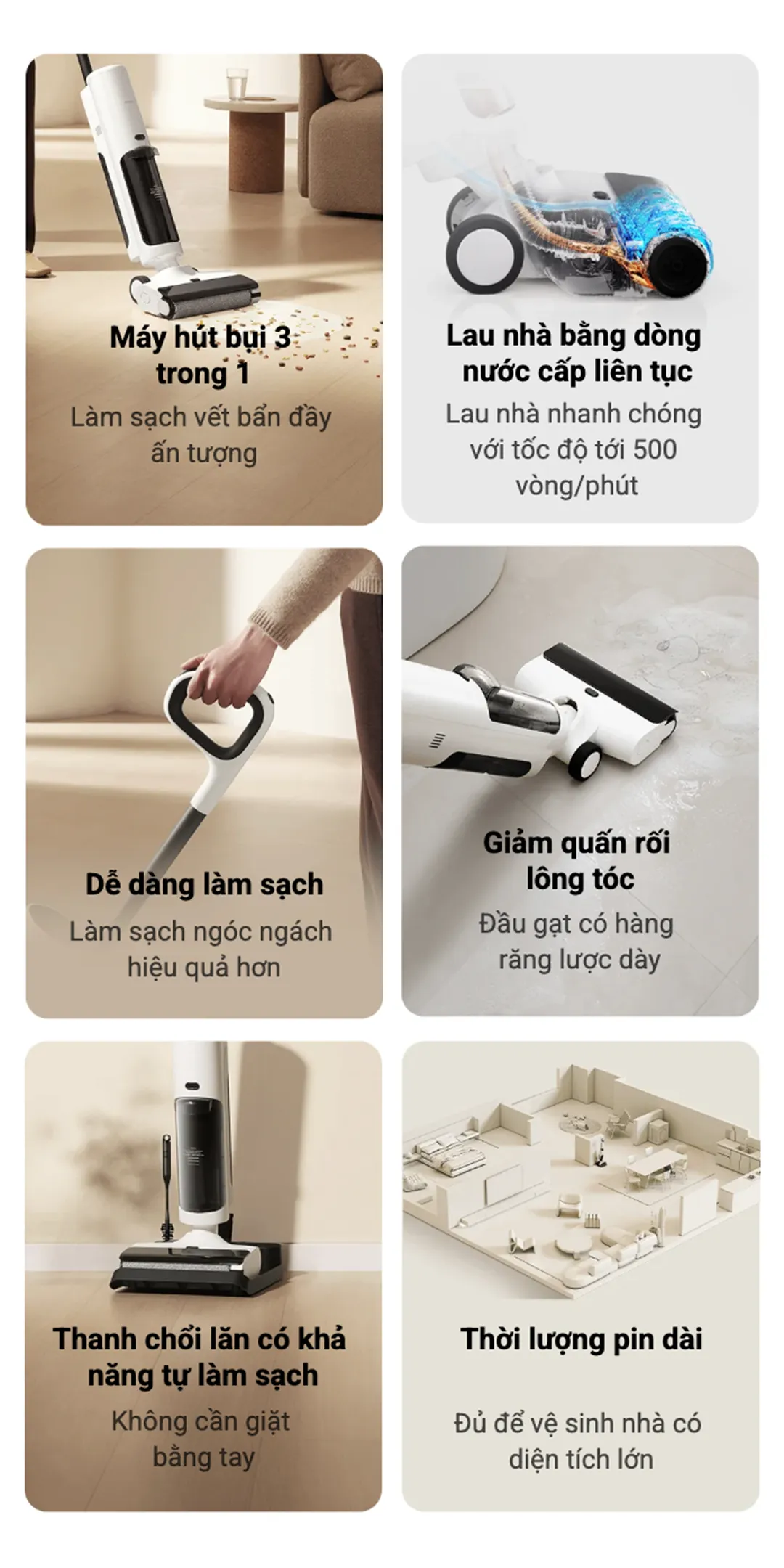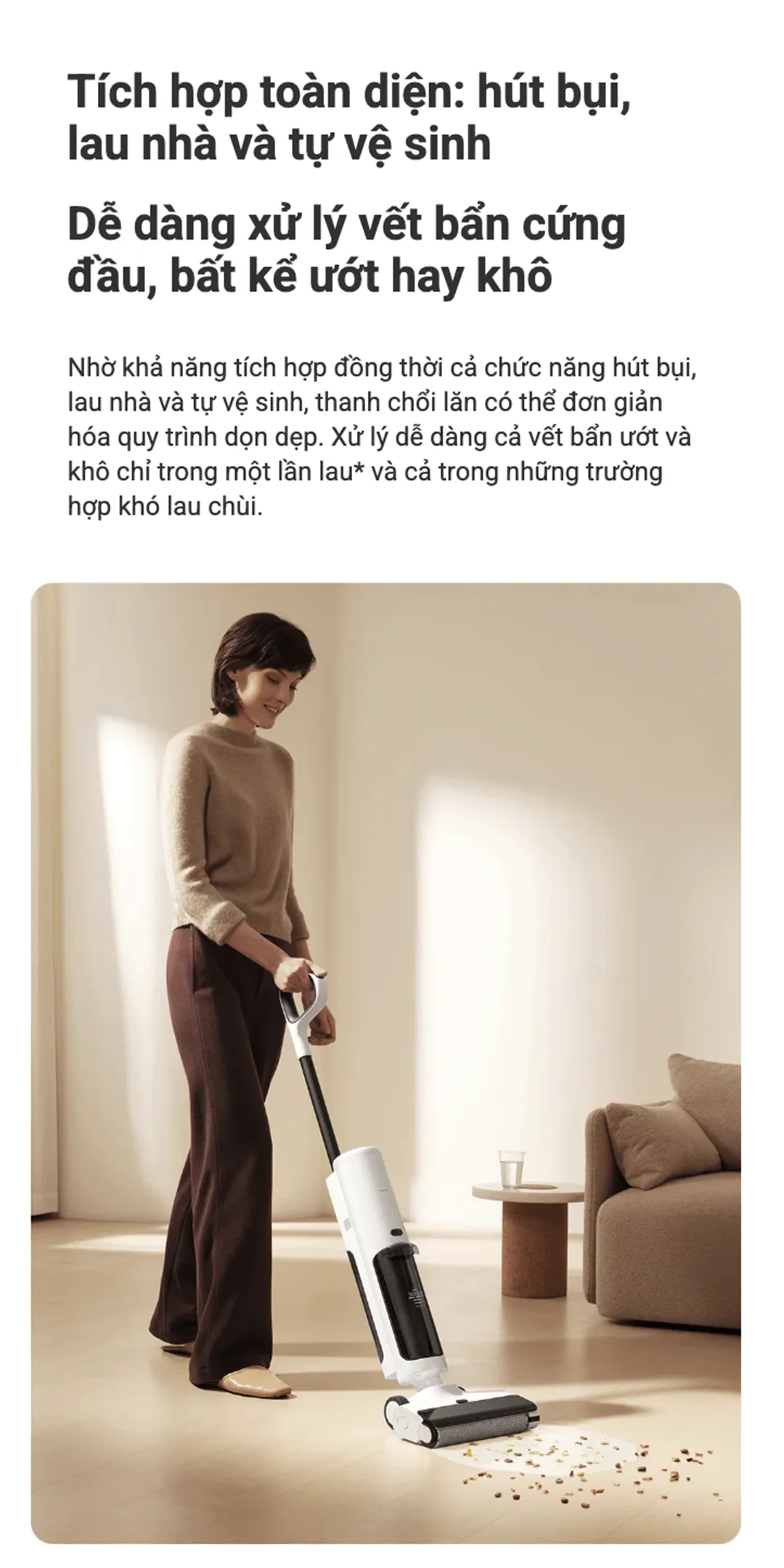 • Tối ưu thời gian và công sức: Một thiết bị duy nhất thực hiện tất cả các nhiệm vụ dọn dẹp.