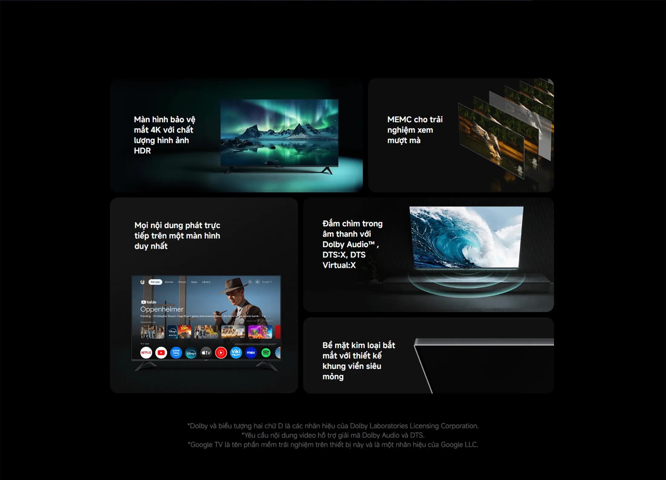 - DTS:X: Cho phép định vị các nguồn âm thanh một cách chính xác trong không gian, giúp bạn cảm nhận được từng giọng nói, tiếng động và hiệu ứng đặc biệt.