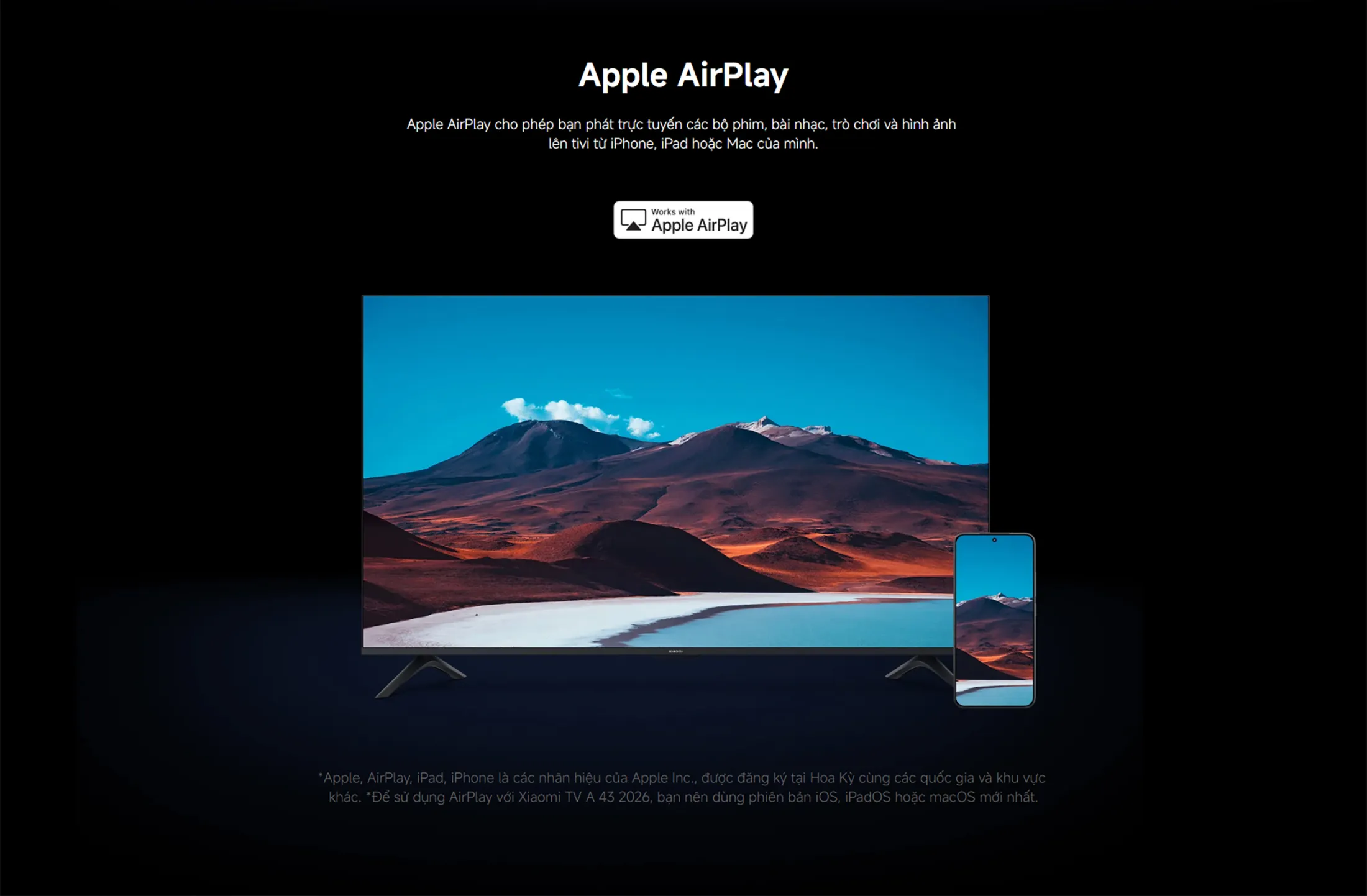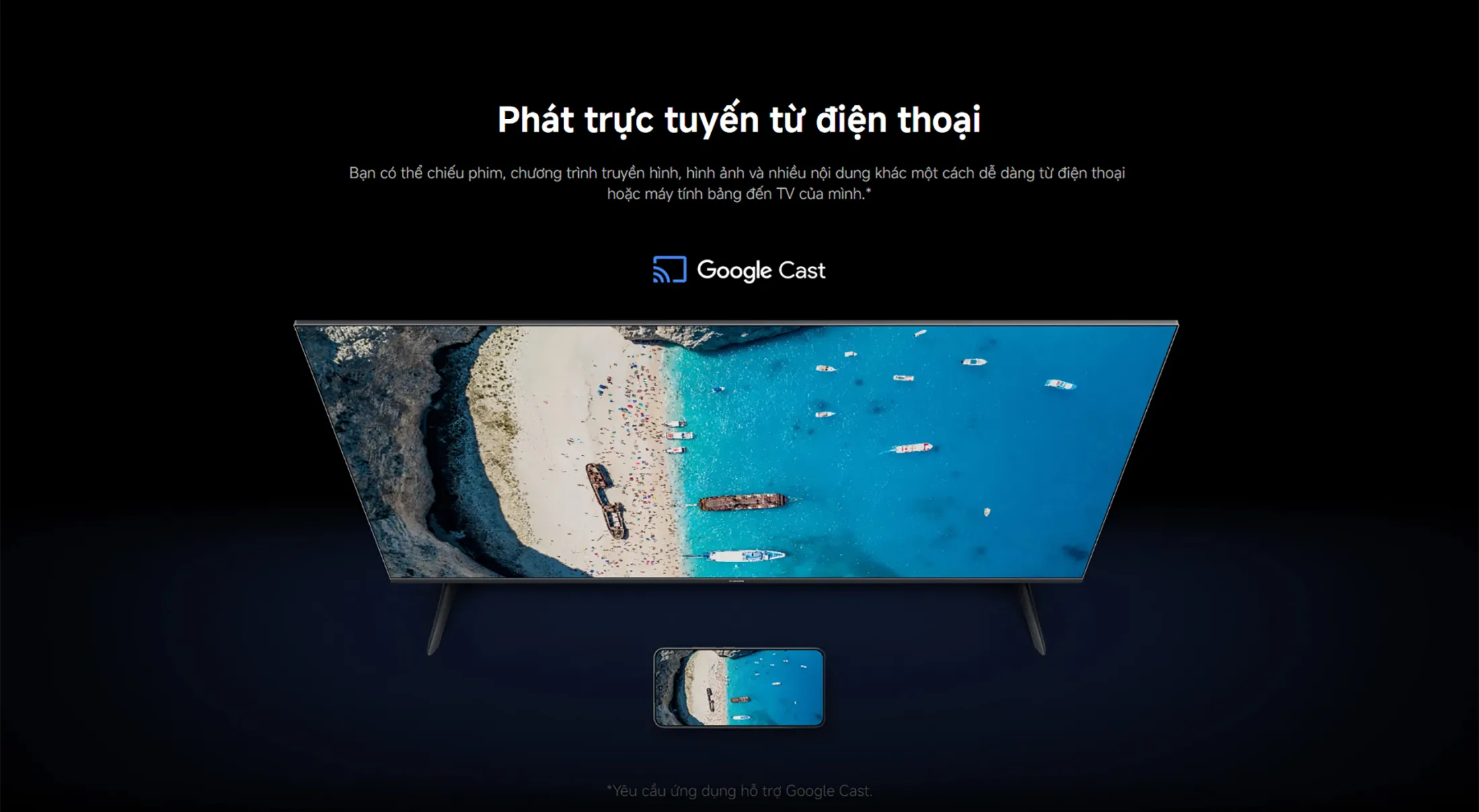 - Phát trực tuyến từ điện thoại: Hỗ trợ Google Cast và Apple AirPlay, giúp chiếu nội dung từ thiết bị di động lên TV một cách liền mạch.