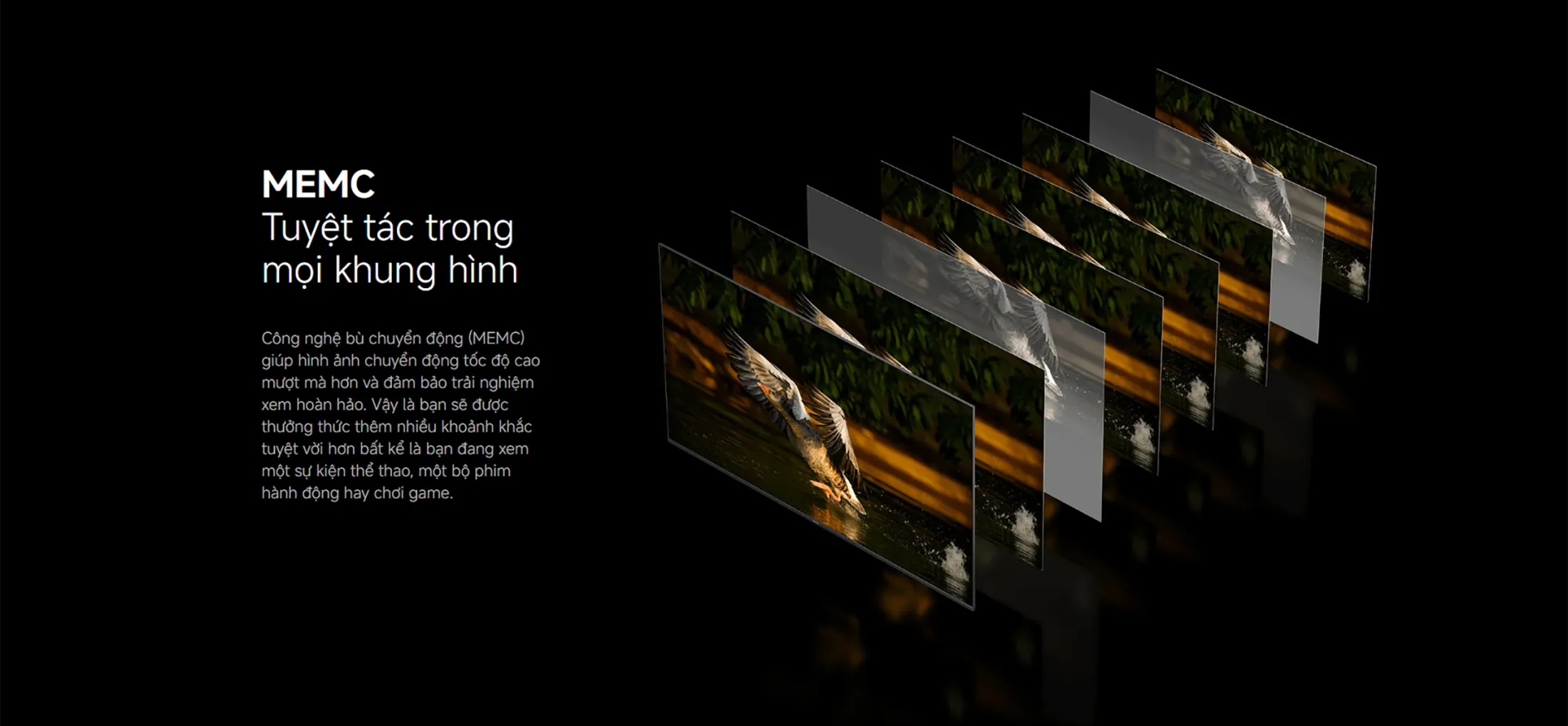 - MEMC (Motion Estimation and Motion Compensation): Khi xem các nội dung chuyển động nhanh như trận đấu thể thao hoặc phim hành động, MEMC làm giảm rung lắc, giữ cho hình ảnh luôn mượt mà và dễ chịu.