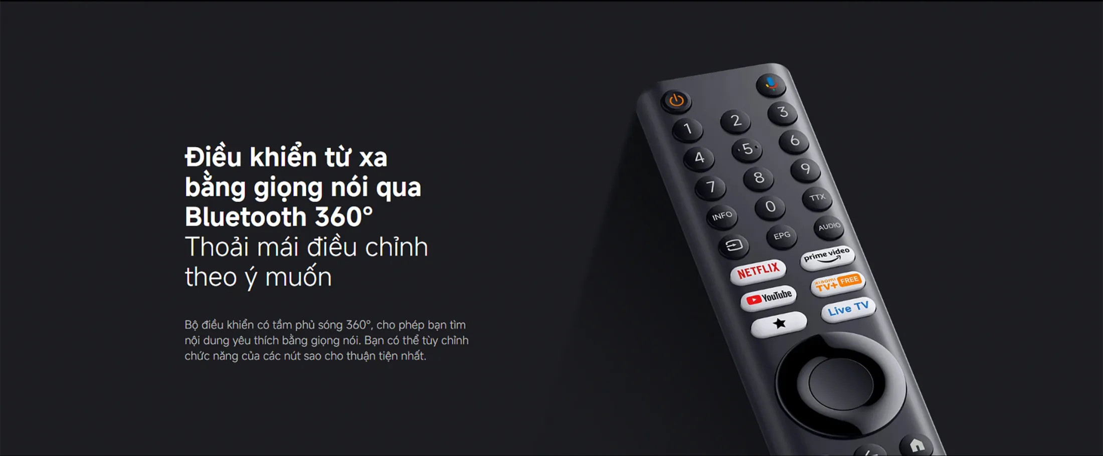 - Điều khiển từ xa bằng giọng nói qua Bluetooth 360°: Phủ sóng toàn diện giúp bạn dễ dàng điều chỉnh nội dung mà không cần phải di chuyển.